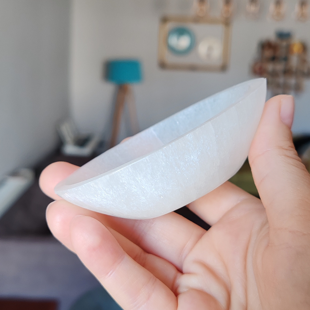 Fas Selenit Kase – 11 cm Çap ile Saf Enerji ve Şıklık