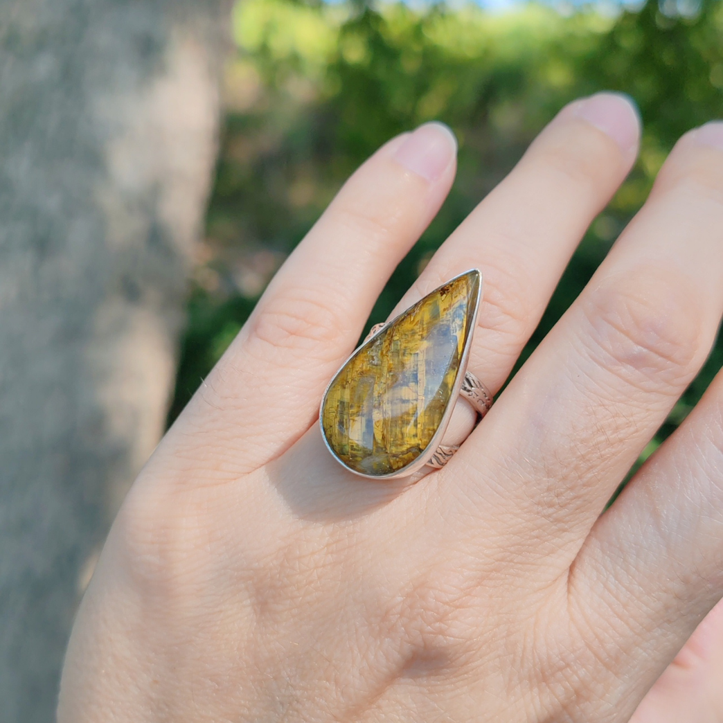 Kaplangözü, ışığa göre değişen canlı yansımalarıyla dikkat çekerken; pietersite, fırtına benzeri desenleriyle mistik bir derinlik sunar. Bu iki taşın birleşimi, her yüzüğü tek ve eşsiz kılar.
