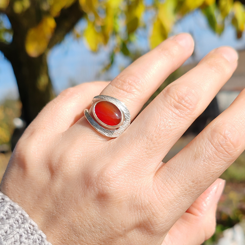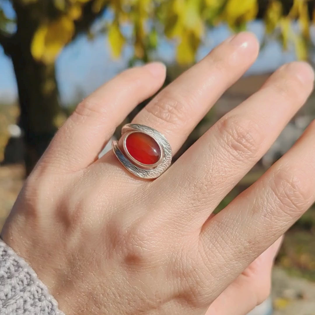 Köklü bir geçmişe sahip olan Yemen akik taşı, kendine özgü koyu kırmızı tonları ve canlı parlaklığıyla dikkat çeker. 925 ayar gümüşle bir araya gelen bu özel tasarım yüzük, hem klasik hem de modern çizgilere sahip güçlü bir stil sunar. Taşın doğal yapısı ve zengin rengi sayesinde her yüzük eşsiz ve karakter sahibi bir parça hâline gelir.