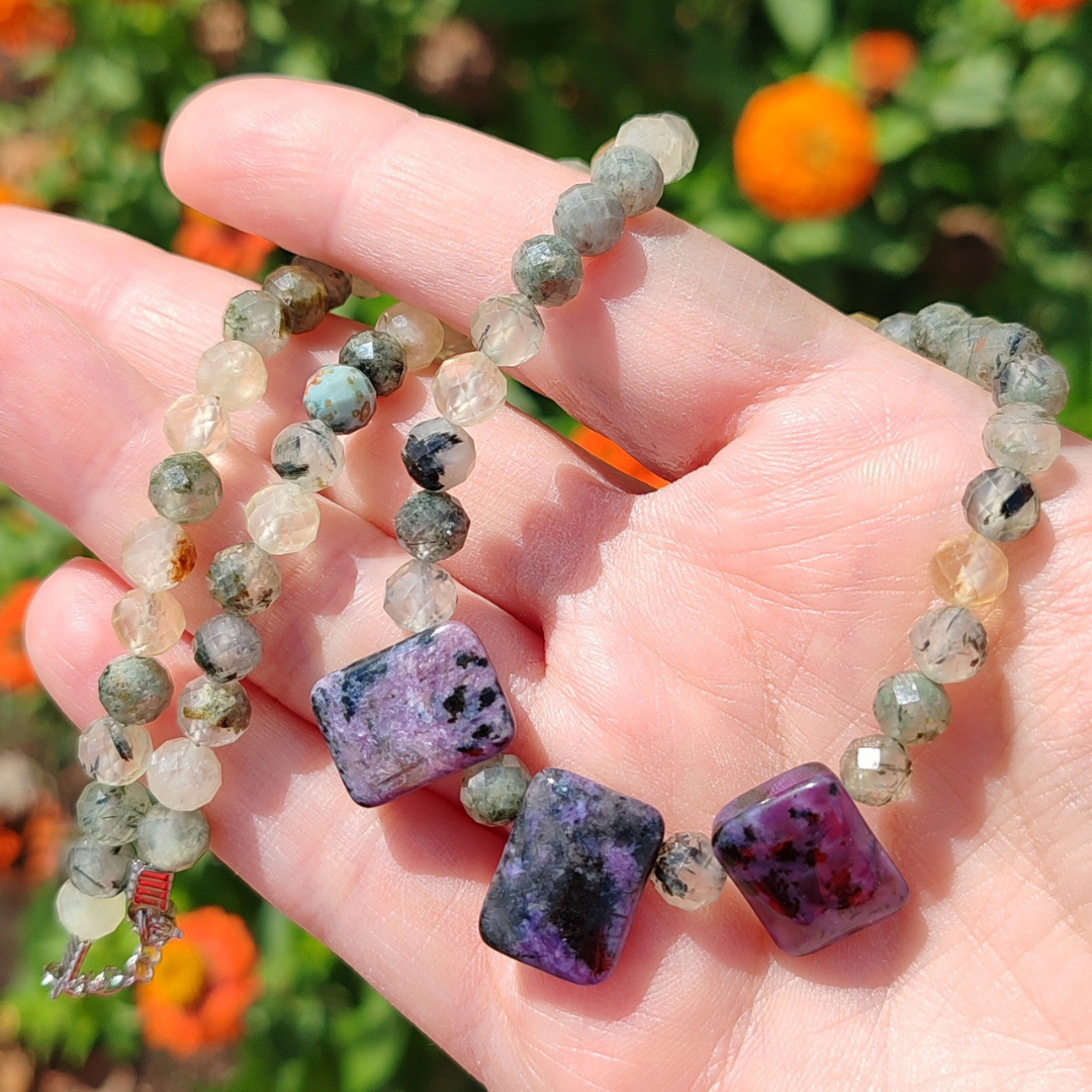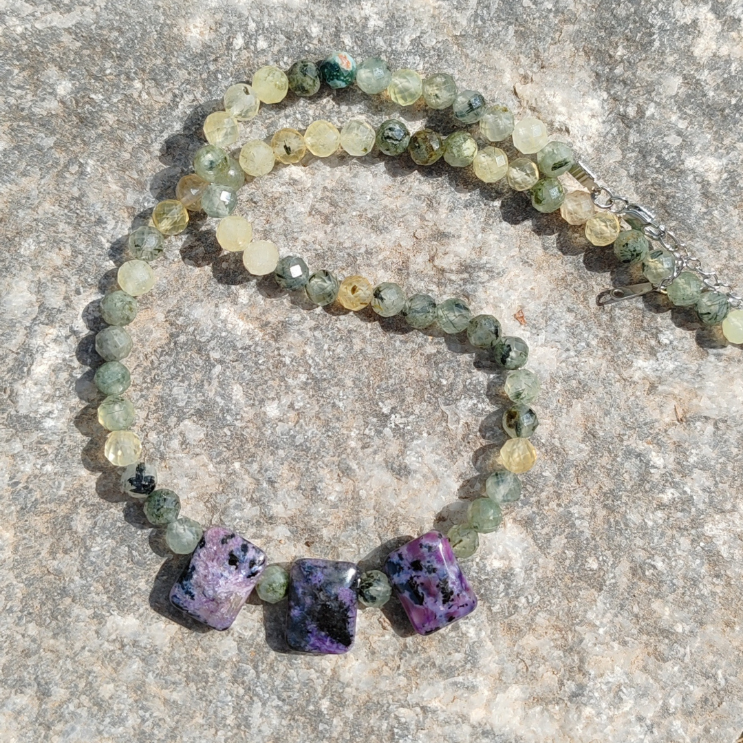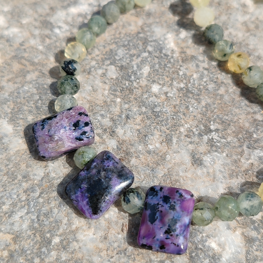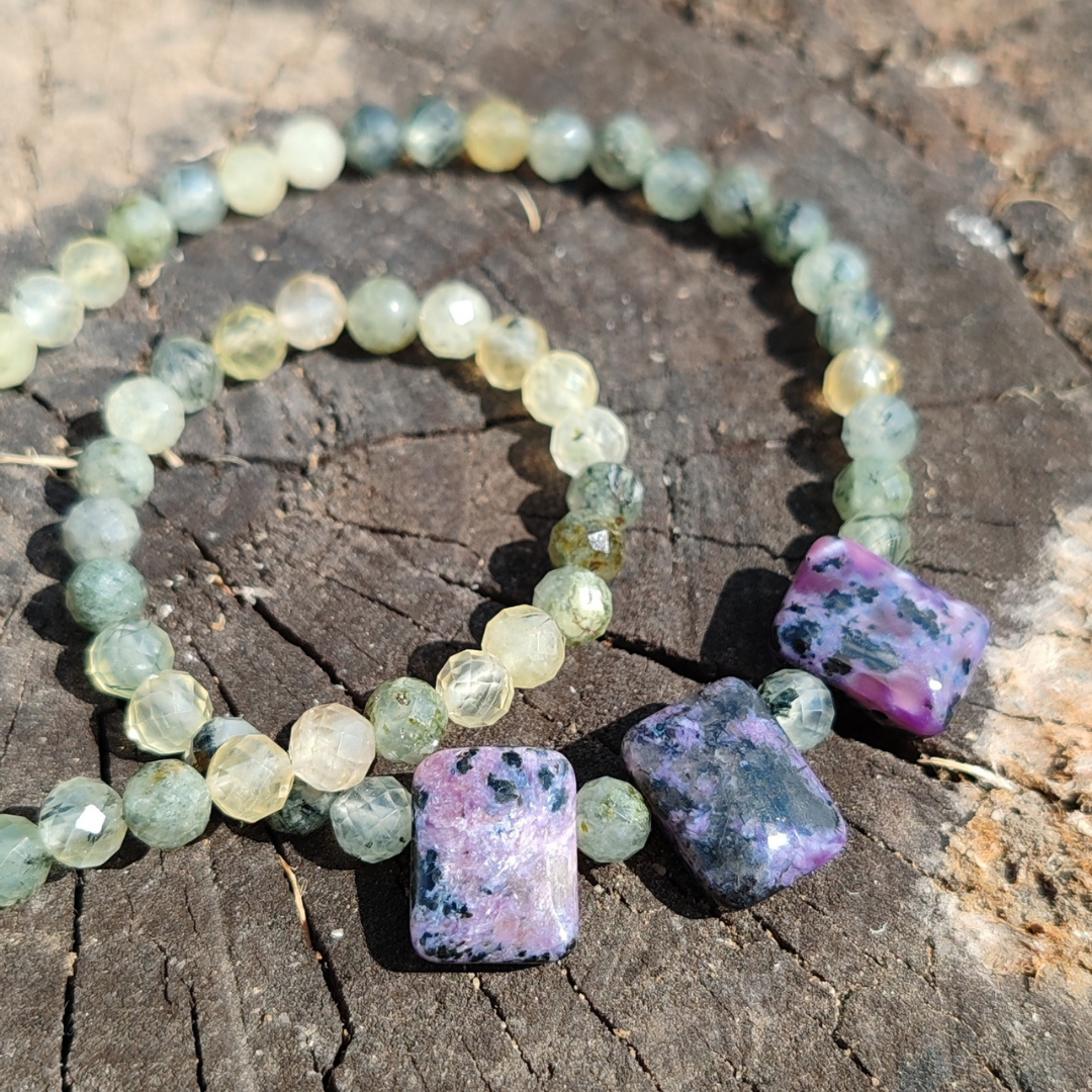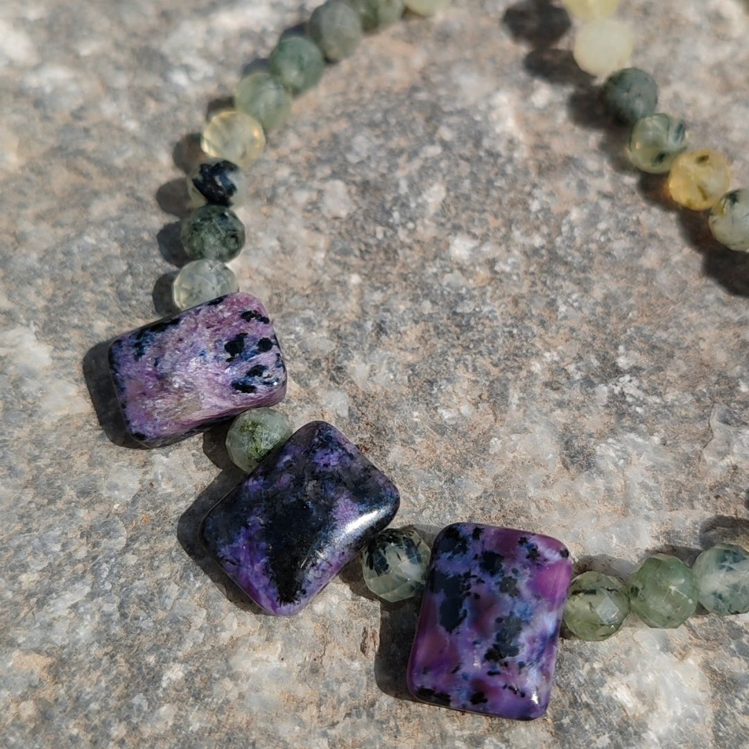 • Taşlar: Kristal Kesim Prehnit & Özel Kesim Charoit