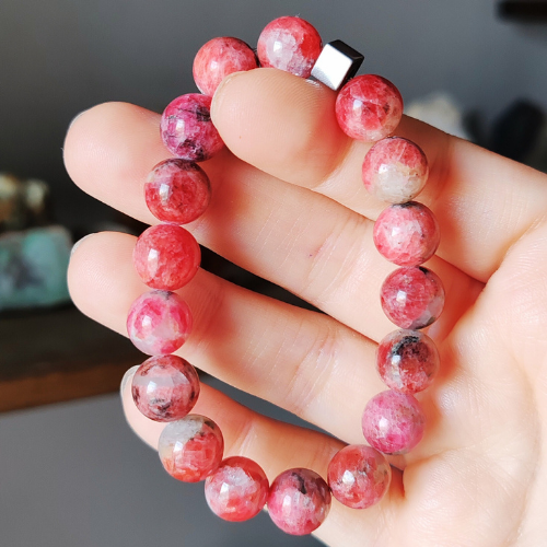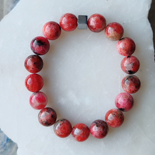 Pembe tonları ile siyah damarların doğal kontrastını bir araya getiren 10 mm rodonit taşlarıyla tasarlanan bu bileklik, hem romantik hem de güçlü bir duruş sunar. Rodonit taşlarının karakteristik desenleri sayesinde bileğinizde dikkat çekici, modern ve benzersiz bir görünüm oluşur.